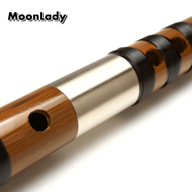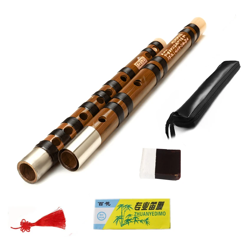 Black Lines Chinese Traditional Musical Instrument CDEF Key Handmade Bamboo Flute Dizi 2 Sections P